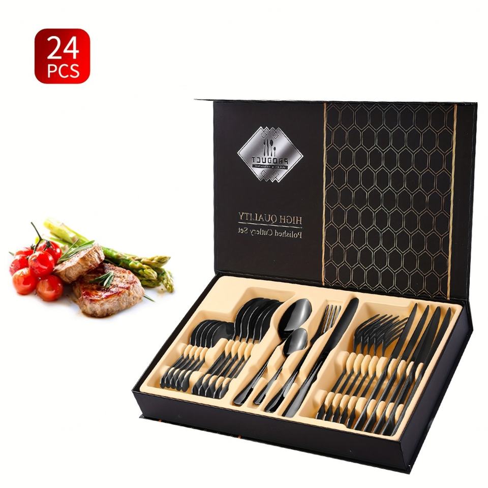 Luxury High Quality Stainless Steel Silver and Gold Cutlery Set High End Mirror Polished Cutlery