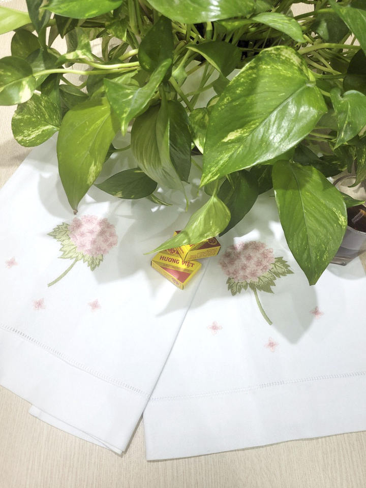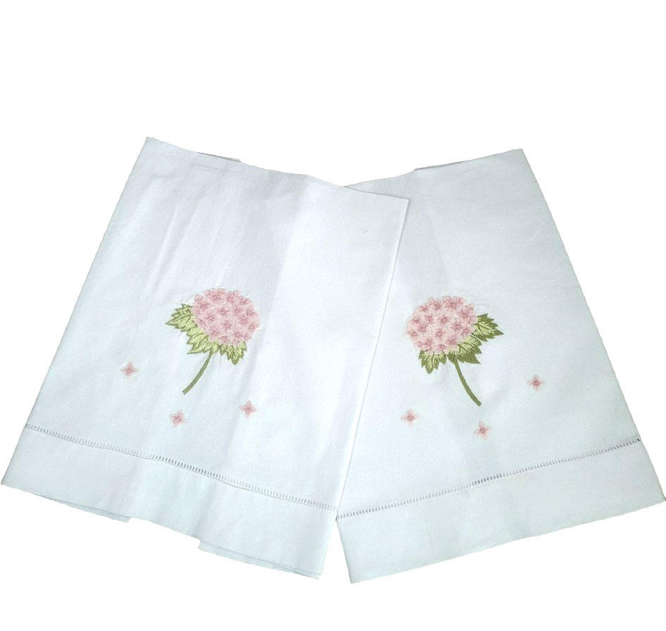 Luxury High Quality White Cotton Hand Towel Custom Embroidered with Pink Hydrangea Design for Home Sports Weddings