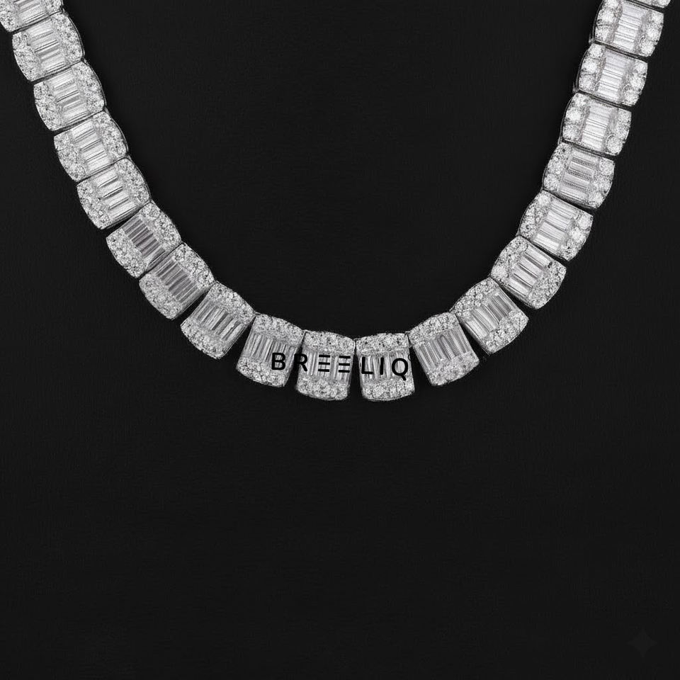 Luxury Hip Hop Baguette and Round Cut Illusion Diamond Chain Crafted in 14 KT Solid Gold with Lab Grown Diamonds VVS Clarity