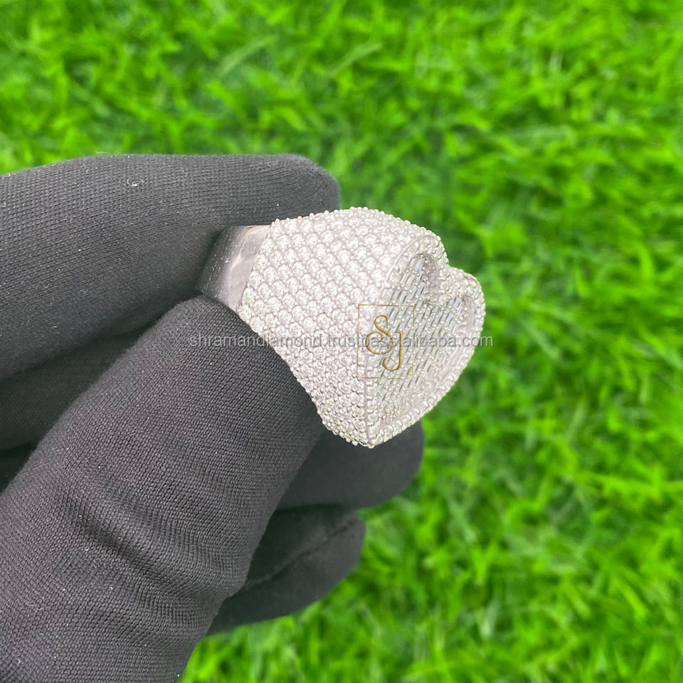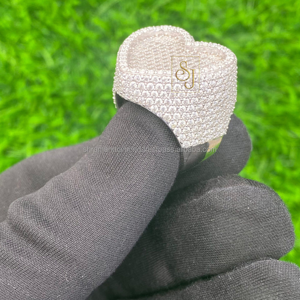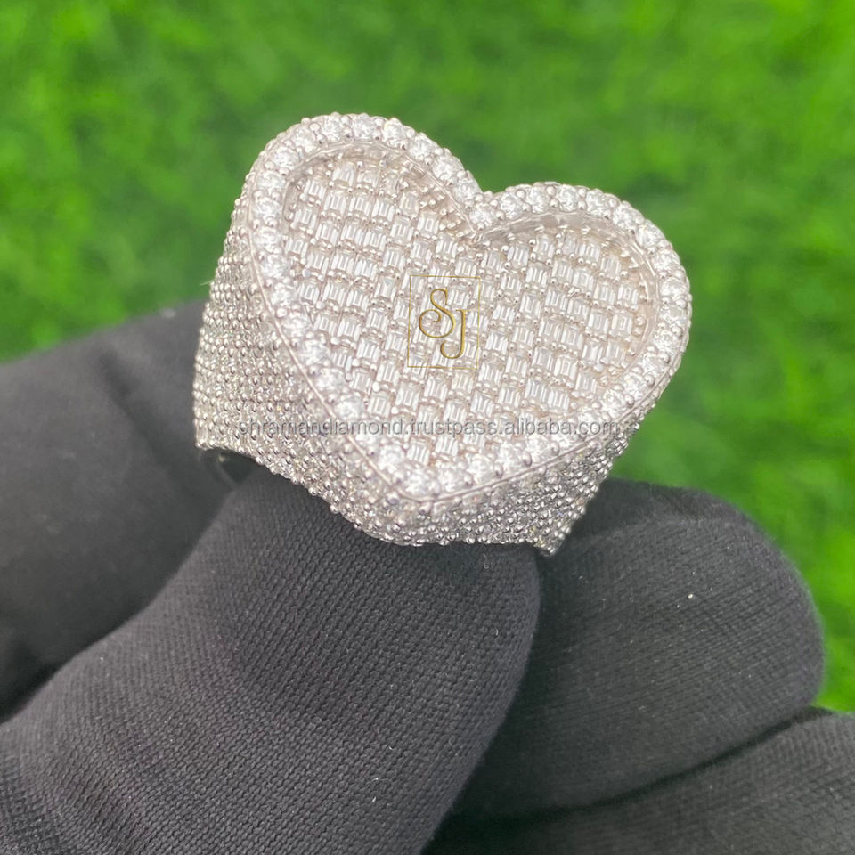 Luxury Hip Hop Fine Rings Customizable 925 Sterling Silver VVS Baguette Moissanite Diamond Iced Heart Bling Rings for Men Women