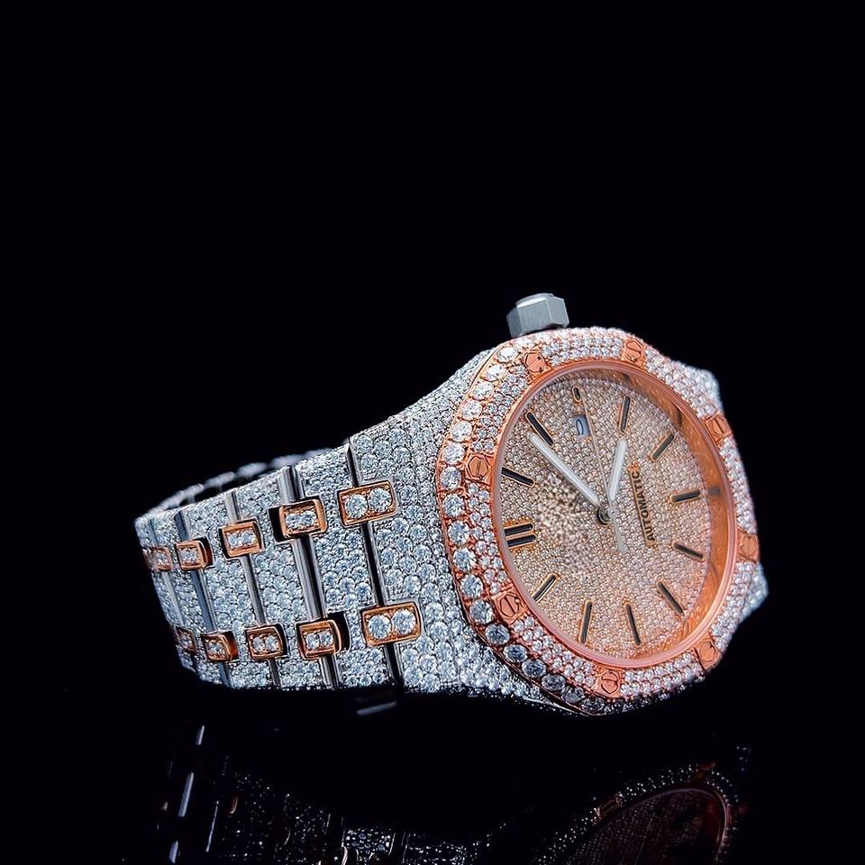 Luxury Hip Hop Fully Iced Stainless Steel Watch Ronda Automatic Customized Word Dial Analog Display Glass Window