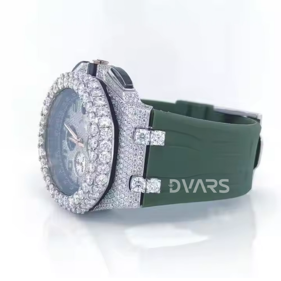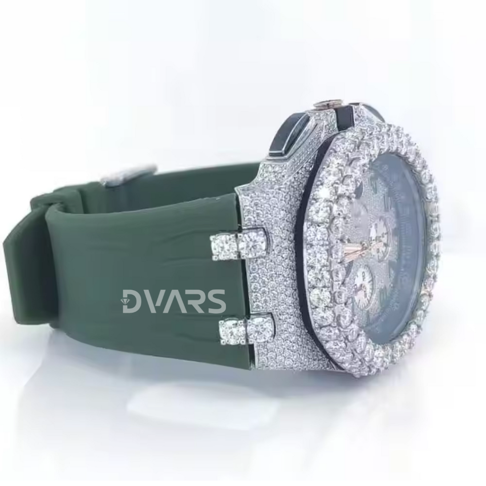 Luxury Hip Hop Sport Watch Three Sub Dial Iced Moissanite Diamond Stainless Steel Glass Window Mechanical Analog Yellow Gold