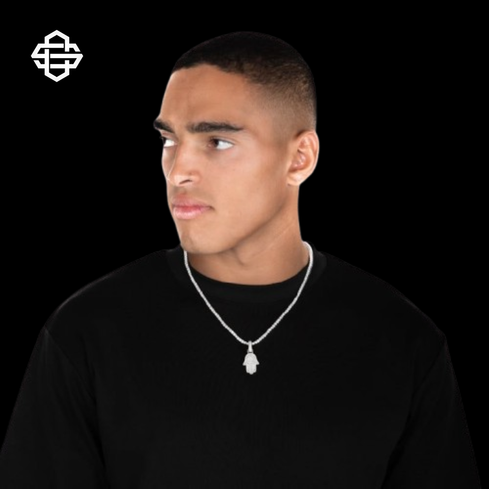 Luxury Hiphop Moissanite Iced Out Hamsa Hand Pendant Necklace for Men and Women Bling Cuban Chain Rapper Jewelry