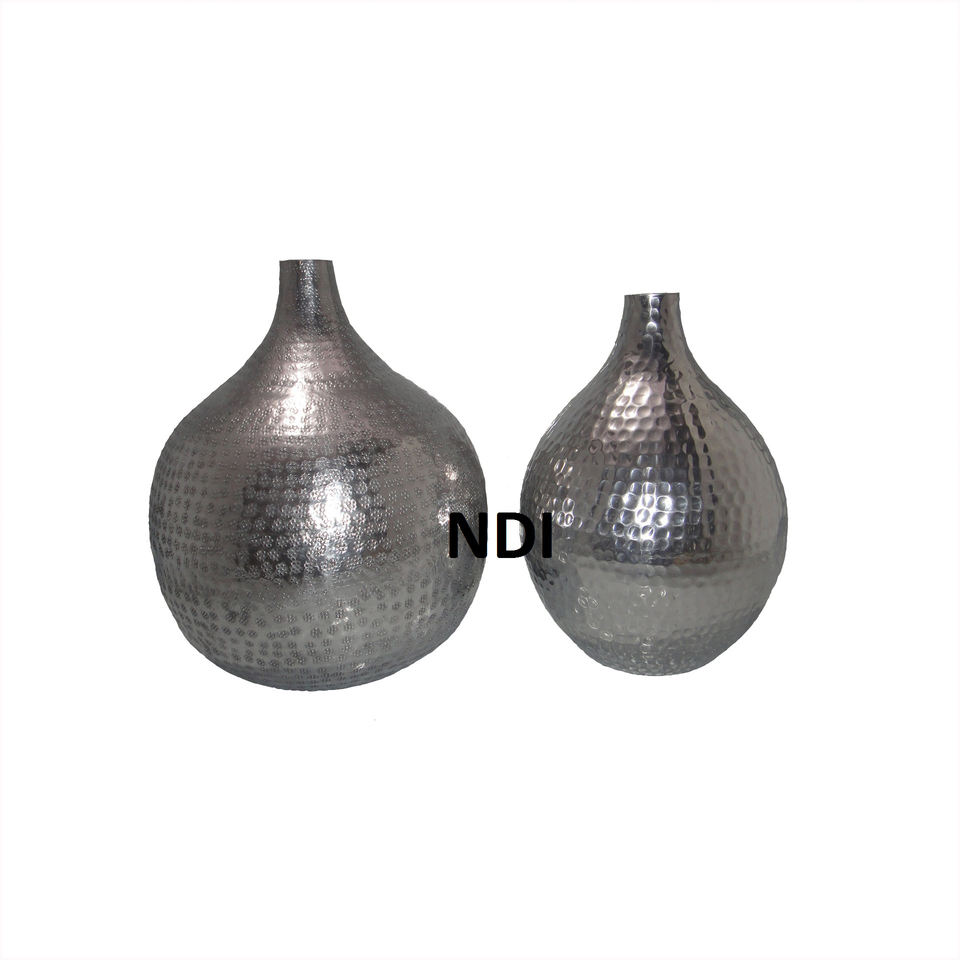 Set Of 2 Hand Engraved Decorative Aluminium Flower Vases for Christmas and Event Party Decoration Aluminium Metal Flower Vases