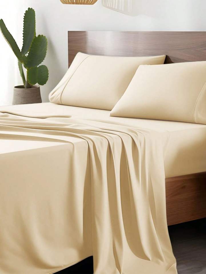 Luxury Hotel Grade 400 Thread Count Sateen Bedding Set 100% Cotton Plain White Flat Sheet 3 Pcs Pillowcases Anti-Bacteria
