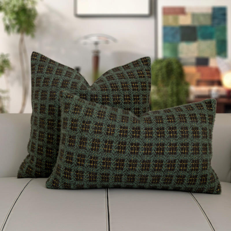 Luxury Hotel Moss Green Pillow Cover Case Checked Throw Pillow Cover Plaid Velvet Cushion Cover