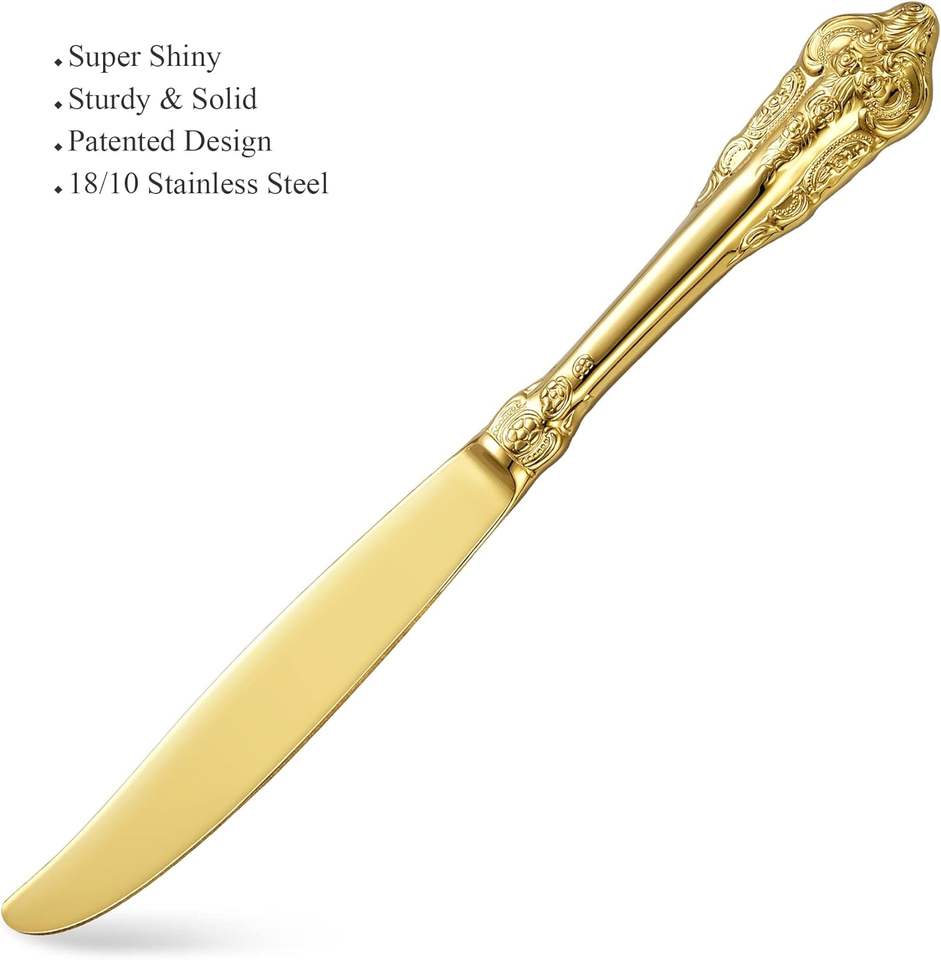 Luxury Hotel Wedding Eco-Friendly Long Handle 5-Piece Stainless Steel Baroque Vintage Retro Golden Royal Cutlery Set Full Spoons