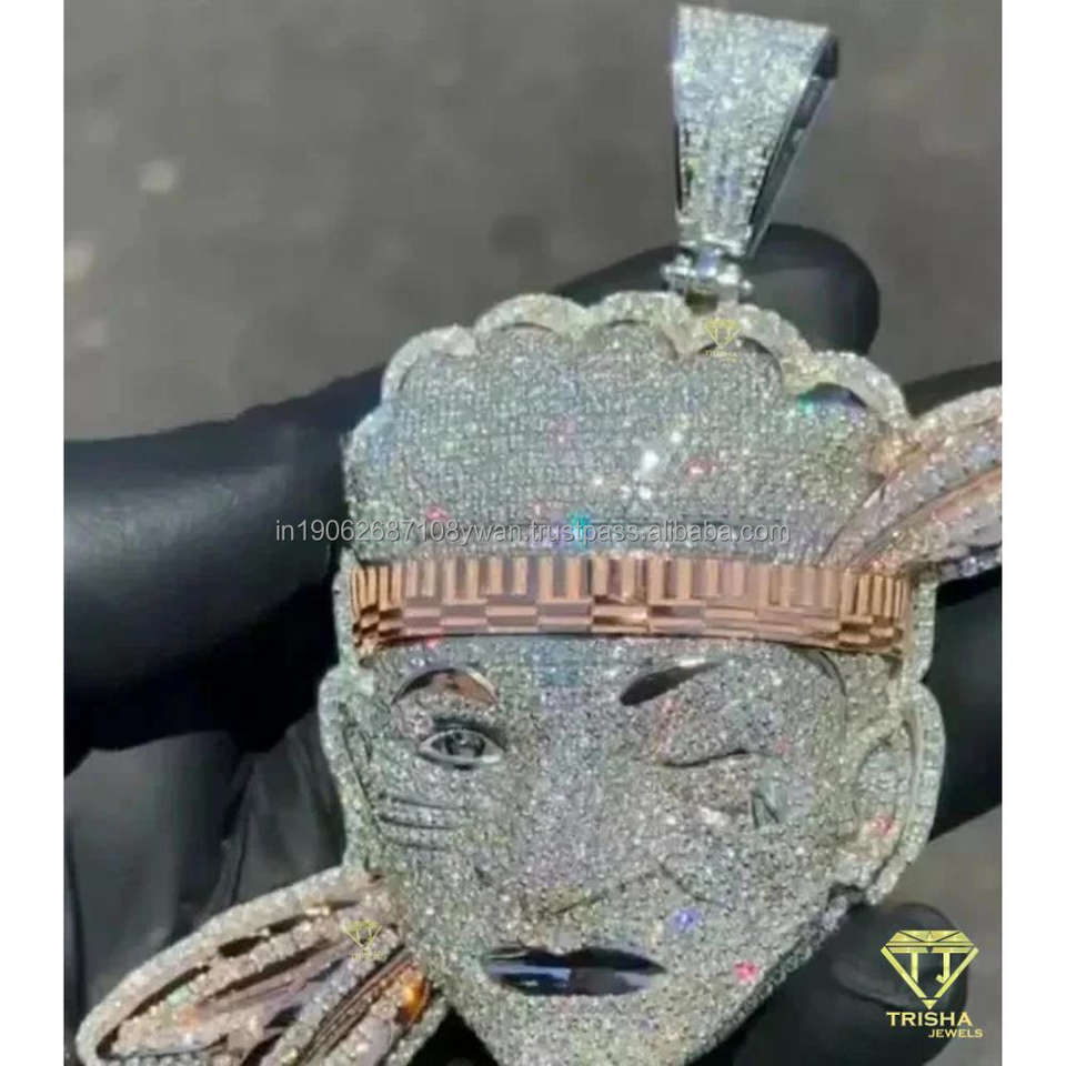 Luxury Iced Joker Face Pendant Necklace in 925 Sterling Silver with Moissanite Diamonds Hip Hop Jewelry for Men Rapper Style