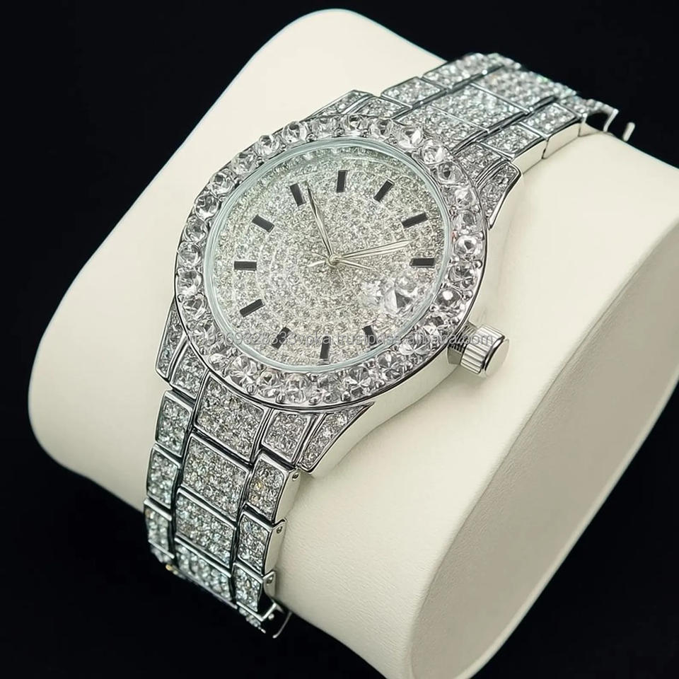 Luxury Iced Mechanical Watch Men Diamond Bling Gold Silver Stainless Steel Analog Glass Hip Hop Jewelry Premium Timepiece Gift