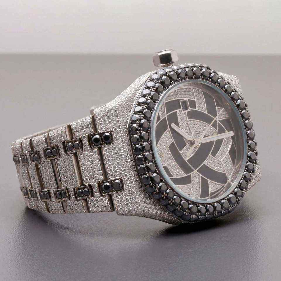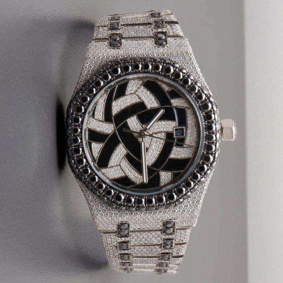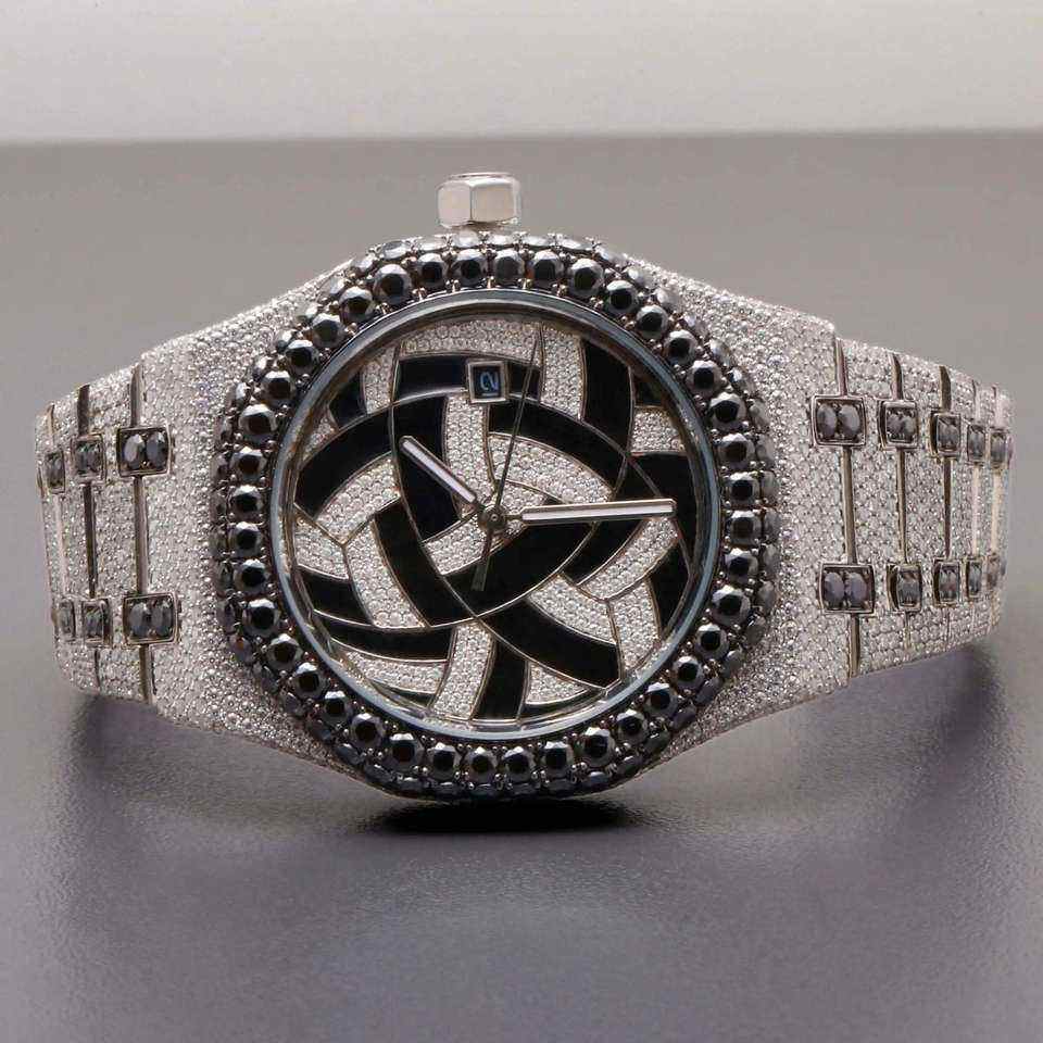 Luxury Iced Moissanite Diamond Watch Black Dial Stainless Steel Automatic Mechanical Hip Hop Date Wristwatch