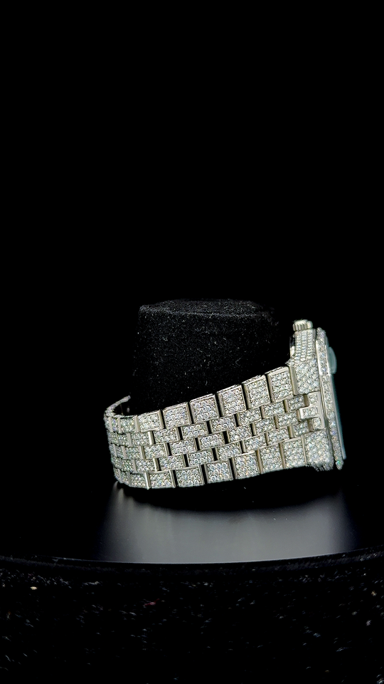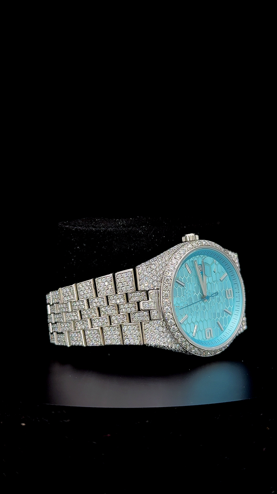 Luxury Iced Out Blue Dial Watch - Custom Honeycomb Dial Timepiece - Celebrity Style Blue Honeycomb Dial Watch