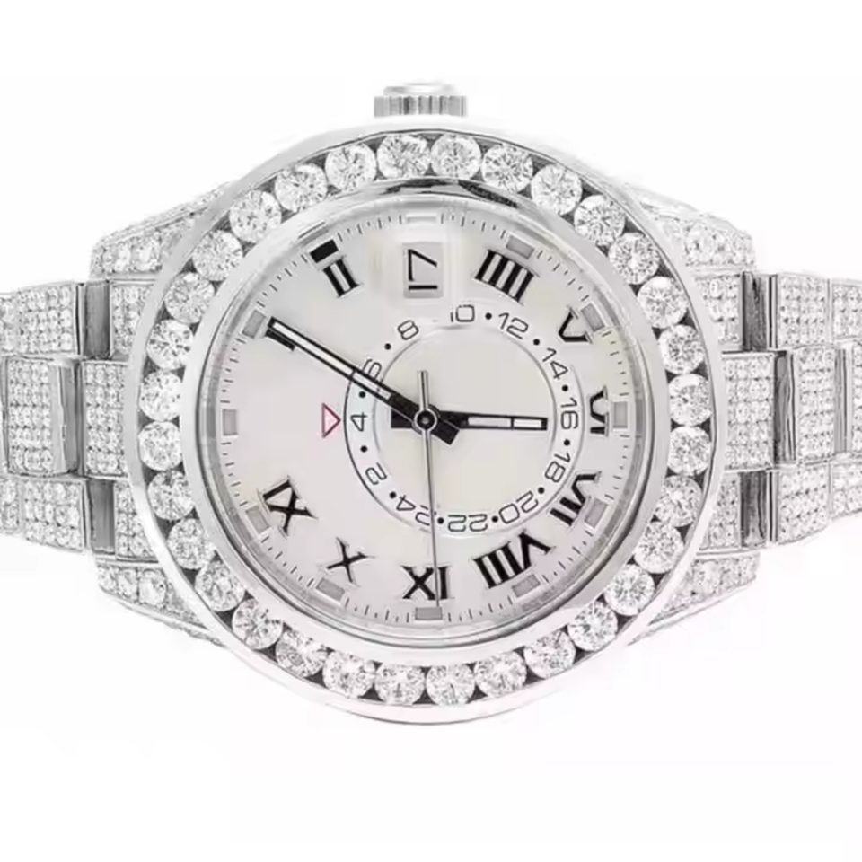 Handmade Mossinite Diamond Stainless Steel Watch for Men Hip Hop Watch Gift for Him Her