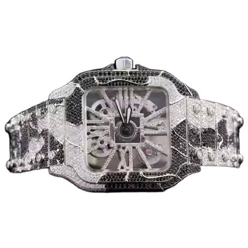 Luxury Classic Fashion Iced Camo Skeleton Watch Natural Lab Diamond Moissanite Watch Women Men Quartz Automatic Black White