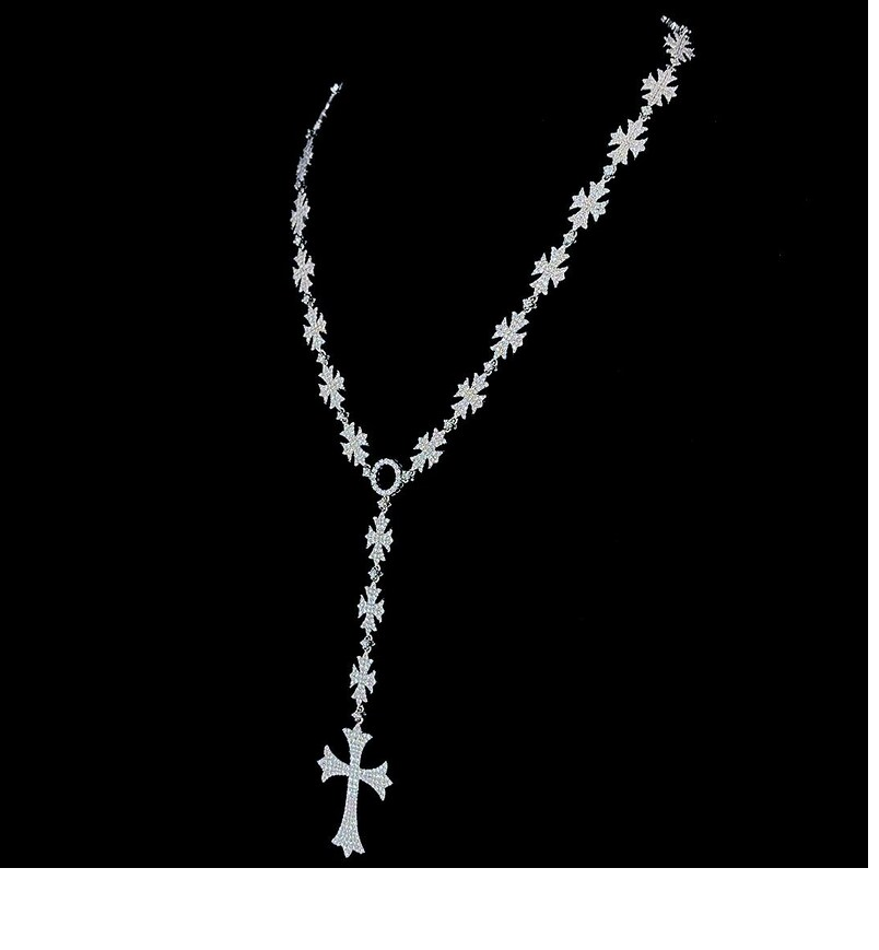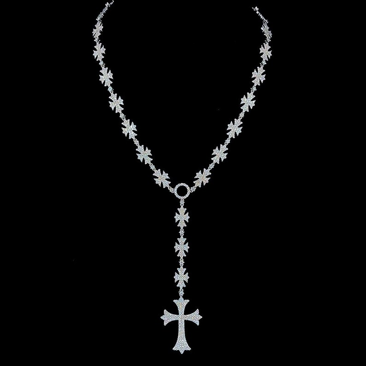 Luxury Iced Out Cross Rosary Necklace VVS Moissanite Diamond 925 Silver Elegant Style