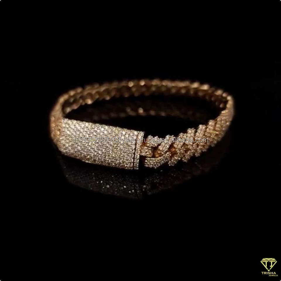 Luxury Iced Out Cuban Link Bracelet for Men in 925 Sterling Silver with VVS Moissanite Diamonds Jewelry for Anniversary Gift