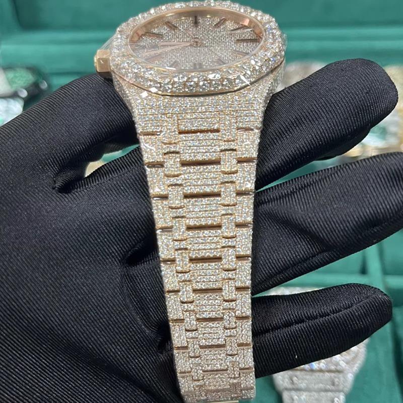 Luxury Iced Out Hip Hop Watch Bust Down Moissanite VVS Diamond Look Stainless Steel Automatic ETA 40mm Men's Watch