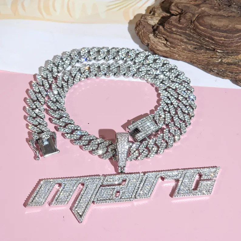 Luxury Iced Out Letter Pendant With Cuban Link Chain VVS Moissanite Diamond 925 Silver Hip Hop Necklace