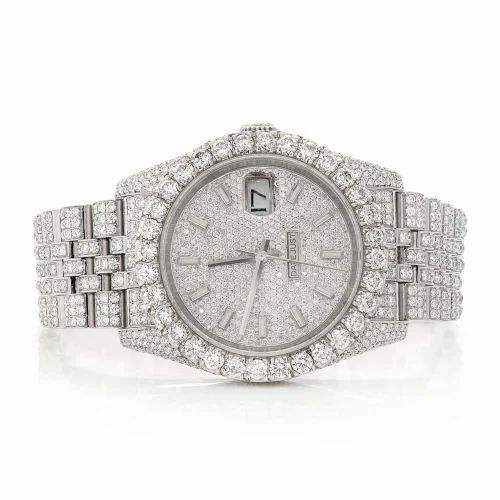 Luxury Iced Out Moissanite Quartz Watch 40mm Silver Diamond Bust Down Stainless Steel Hip Hop