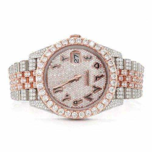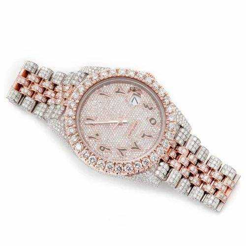 Luxury Iced Out Moissanite Quartz Watch Two Tone Rose Gold 40mm Sapphire Crystal Dial Diamond Bust Down Hip Hop Wristwatch