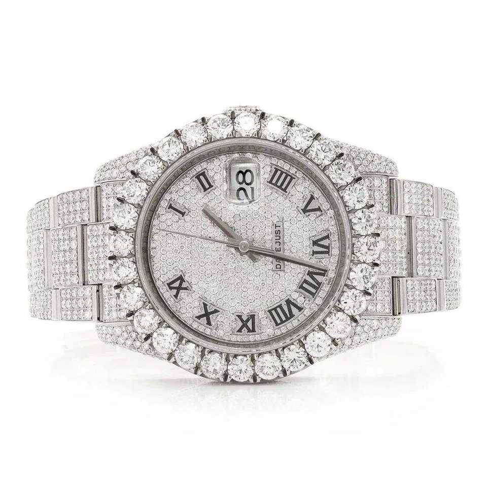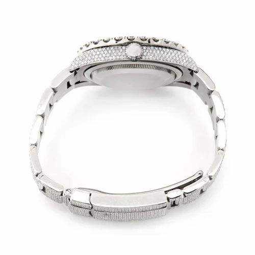 Luxury Iced Out Moissanite Quartz Watch Silver 40mm Glass Dial Diamond Bust Down Roman Dial Hip Hop Wristwatch