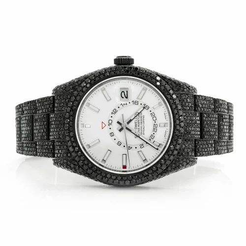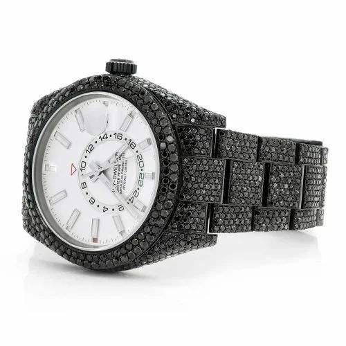 Luxury Iced Out Moissanite Watch Black Automatic Mechanical Diamond Bust Down Hip Hop Stainless Steel Wristwatch