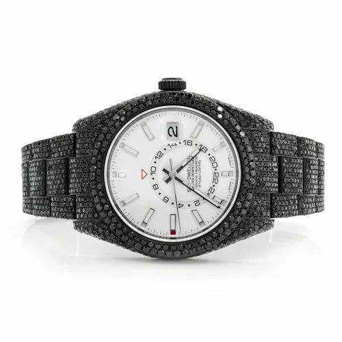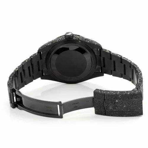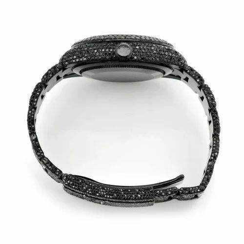 Luxury Iced Out Moissanite Watch Black Automatic Mechanical Diamond Bust Down Hip Hop Stainless Steel Wristwatch