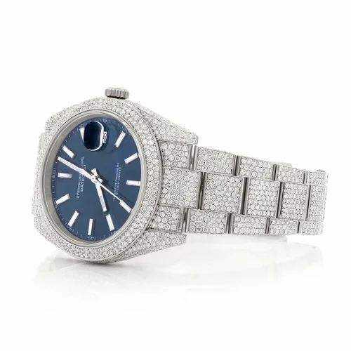 Luxury Iced Out Moissanite Watch Blue Dial Automatic Mechanical Diamond Bust Down Stainless Steel Wristwatch