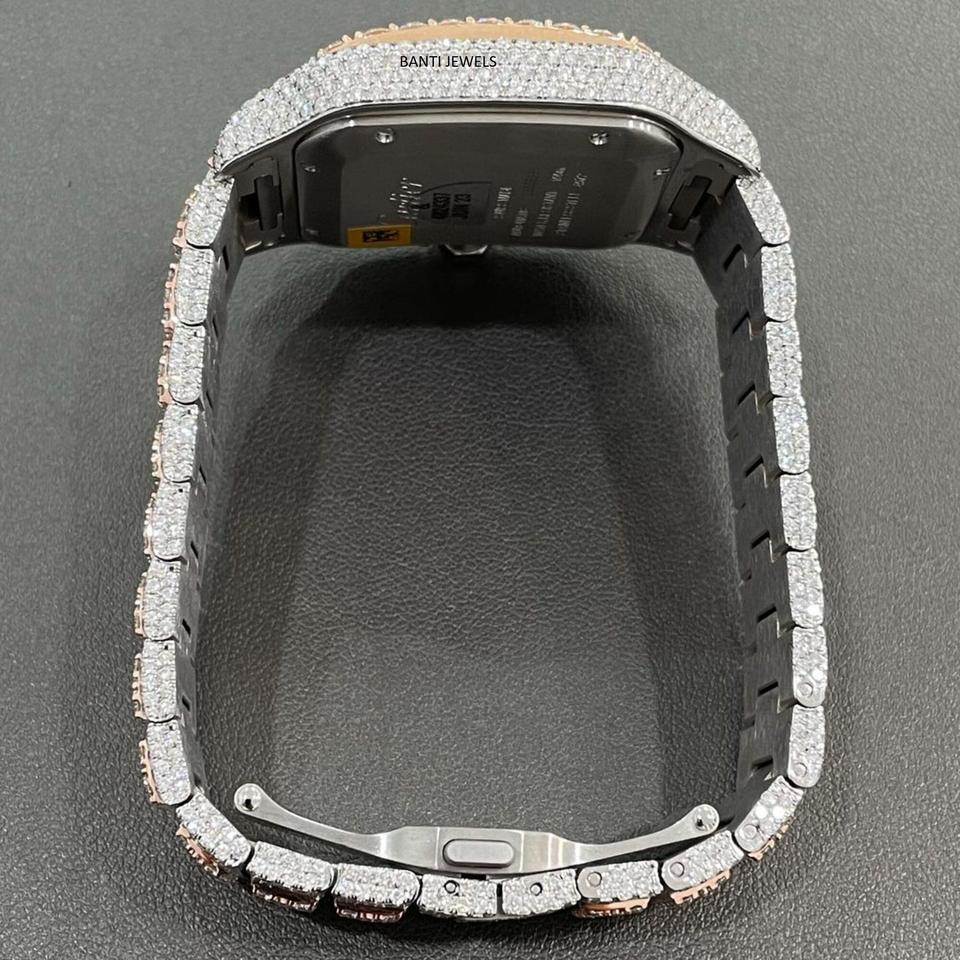 Luxury Iced Out Moissanite Watch Rose Gold Automatic Hip Hop Jewellery Diamond Cuban Link Wrist Watch