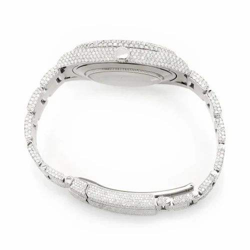 Luxury Iced Out Moissanite Watch Silver Automatic Mechanical Diamond Bust Down Baguette Hip Hop Wristwatch