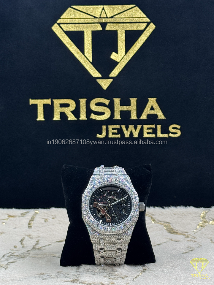 Luxury Iced Out Skeleton Watch for Men Mechanical Moissanite Diamond Wristwatch Hip Hop Bling Timepiece Trisha Jewels Collection