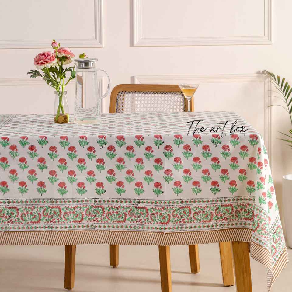 Luxury Indian 100% Cotton Table Cover Tablecloth Eco-Friendly Hand Block Printed Elegant Floral Yellow Pink Design for Home