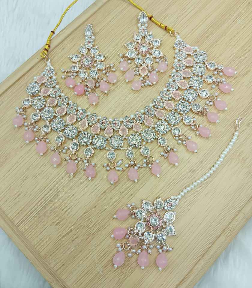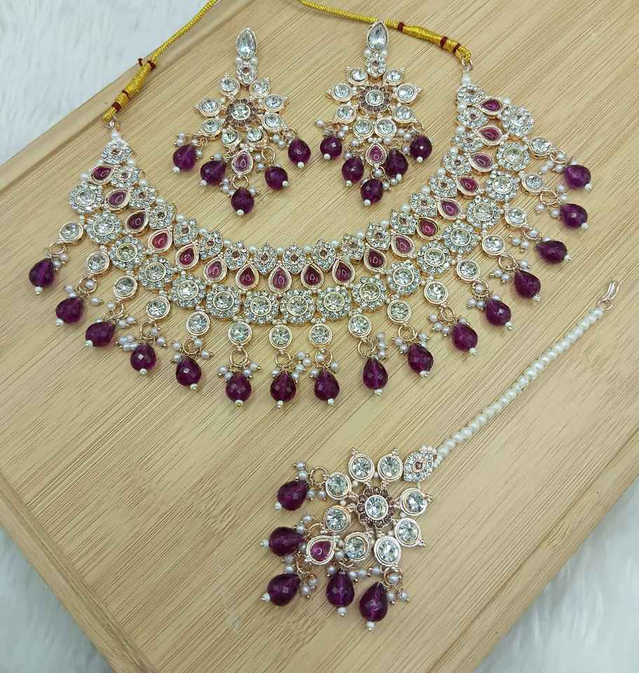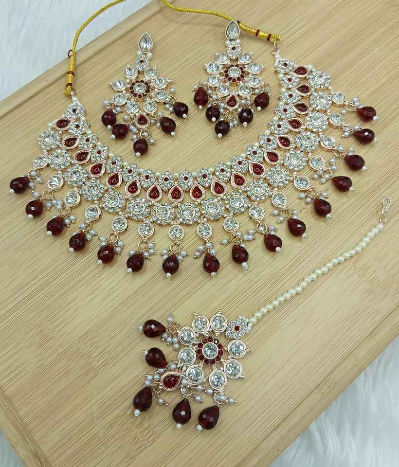 Luxury Indian Kundan Choker Necklace Set with Earrings and Maang Tikka Gold Plated Pearl Jewelry Set
