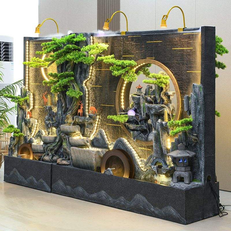 Luxury Indoor Rockery Waterfall - LED Lit Zen Decor for High-End Commercial Spaces