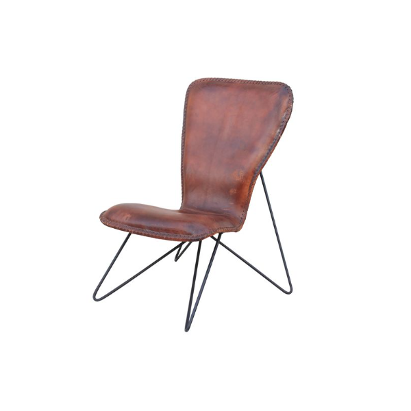 Industrial Leather Bar Chair Metal Base-Brown/Black Finish Durable Water Resistant for Home Bar Lounge Hotel Dining Outdoor Use