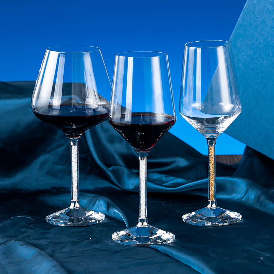 Luxury Inlaid Diamond Goblets Lead-free Crystal Diamond Hand Blown Red Wine Glasses