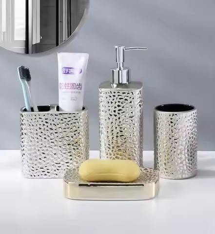 Luxury Interior Metal Bathroom Set With Toothbrush Holder And Soap Dispenser