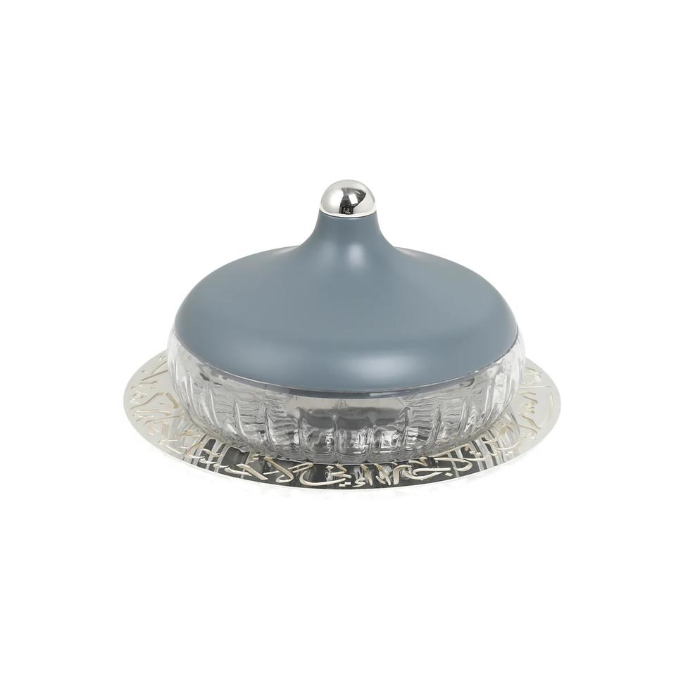 Luxury Islamic Decorative Food Warmer Dome With Glass Bowl Arabic Calligraphy Metal Base Premium Home Dining Buffet For Ramadan