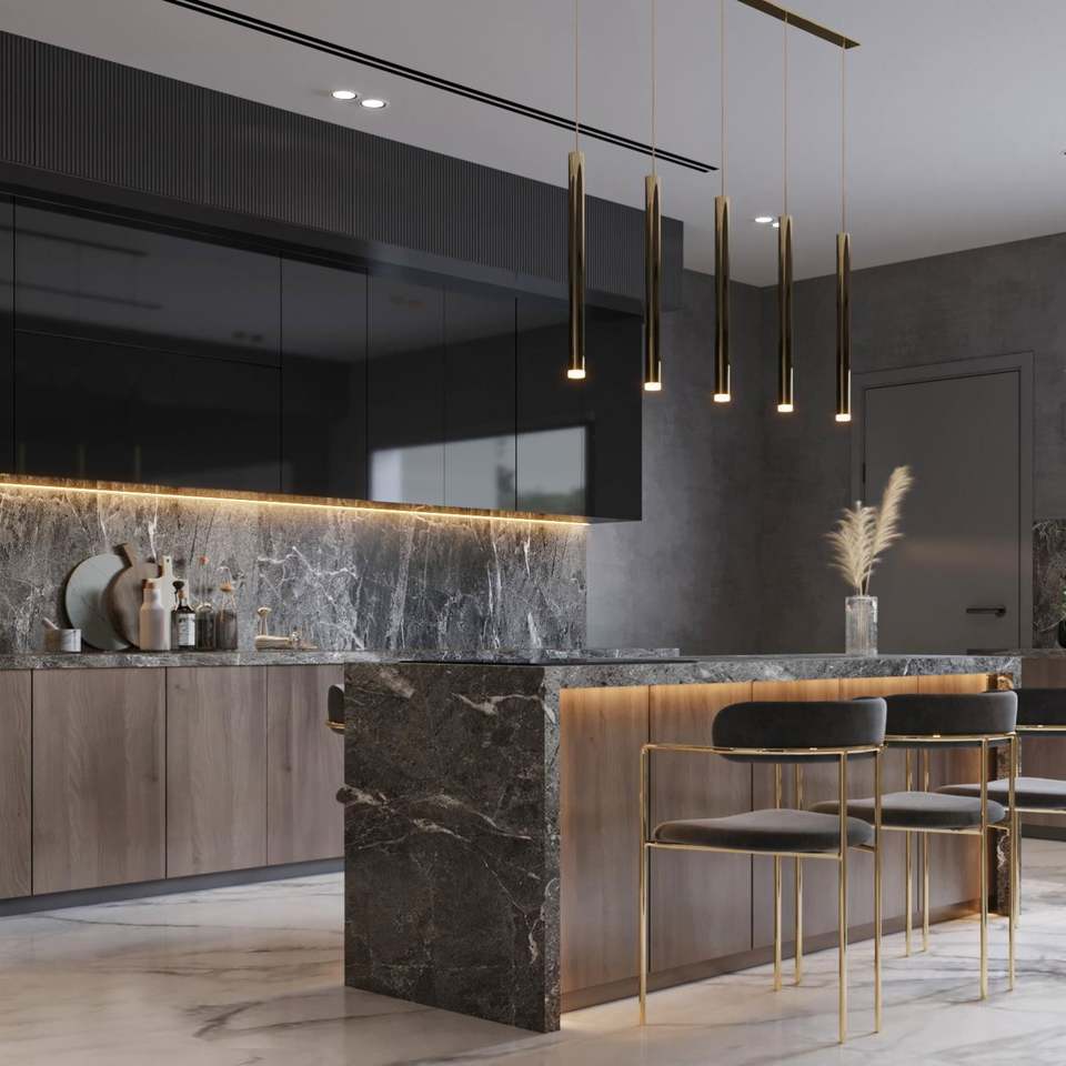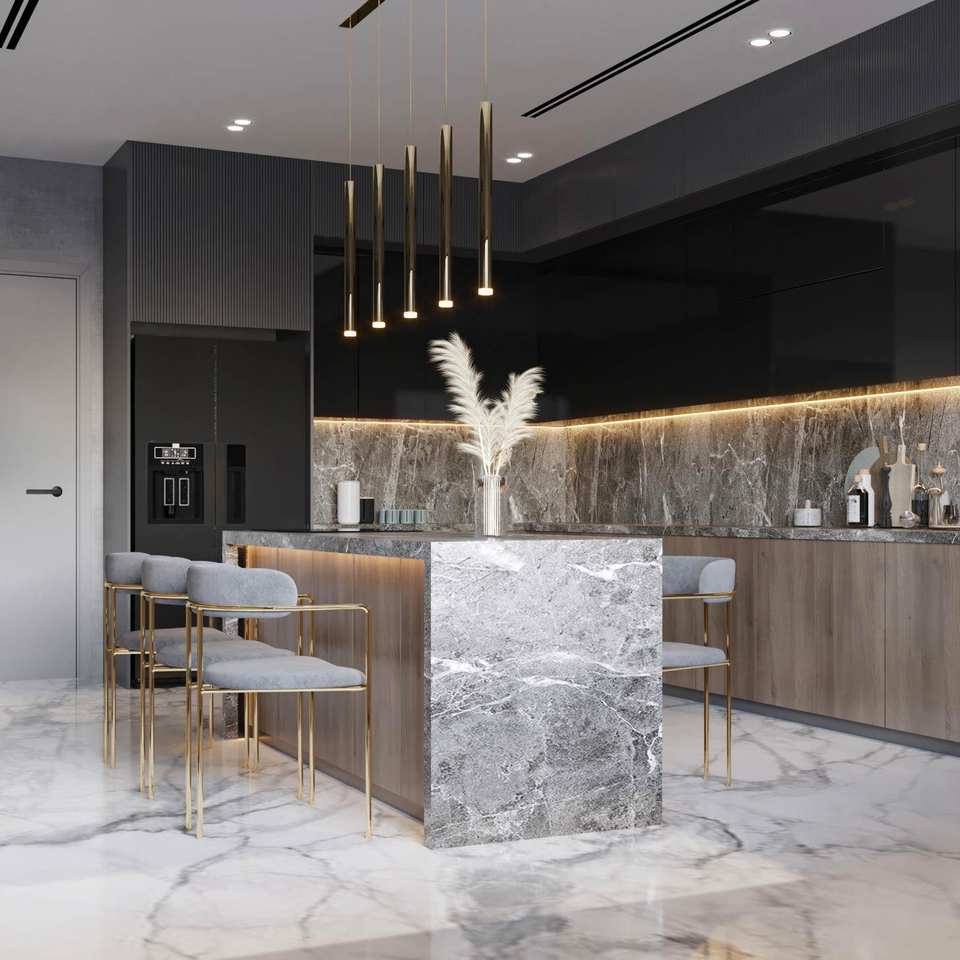 Luxury Island Solid Wood Grain Surface Plywood Storage Kitchen Unit Set Modern Corner Cabinet Wall Kitchen Cabinet