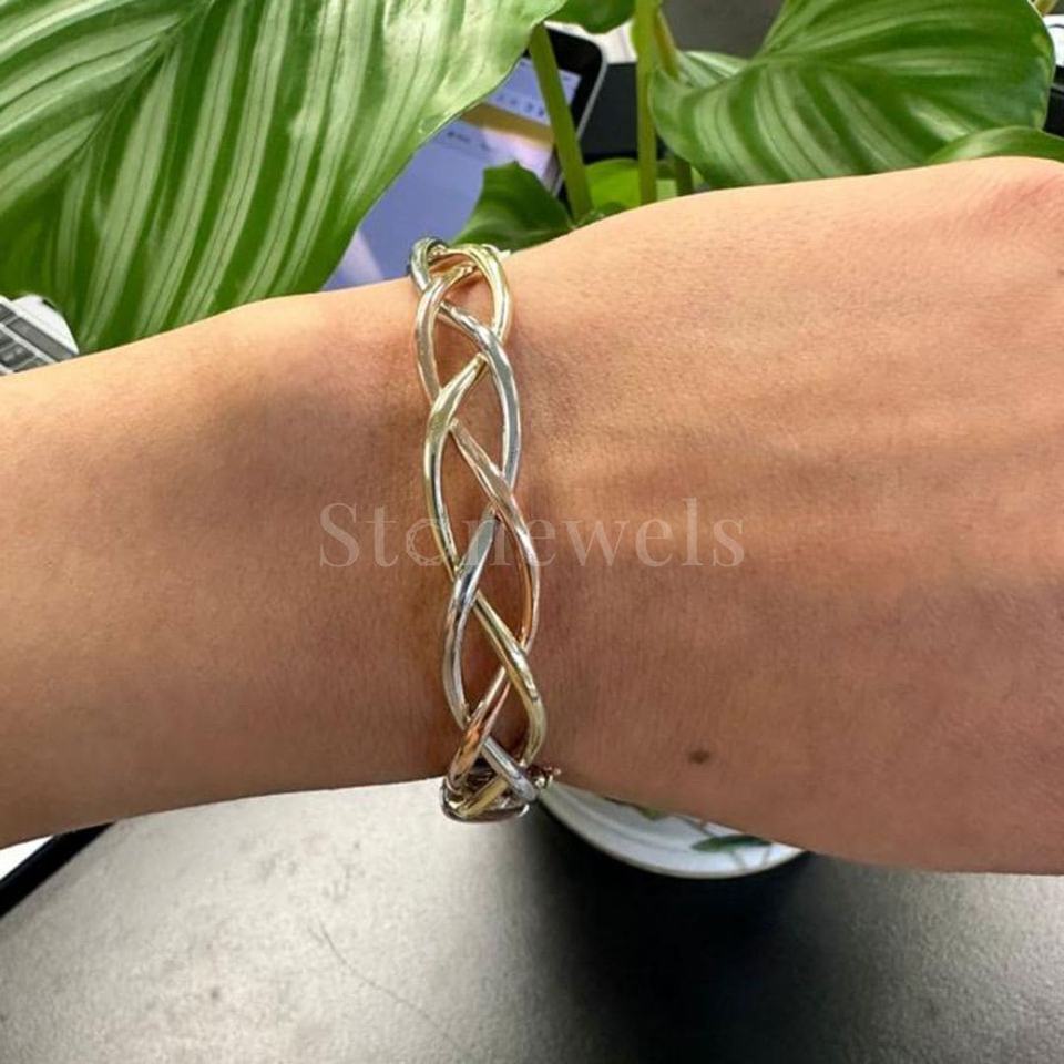 Model Number:Gold Three Tone Braided Italian Bangle luxury gold