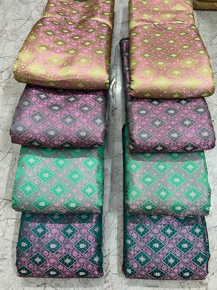 Luxury Jacquard Brocade Satin Fabric Intricately Woven with Floral Traditional Motifs Printed Sherwanis Sarees Gowns for Dresses