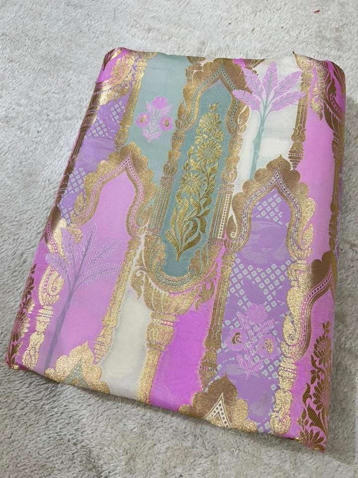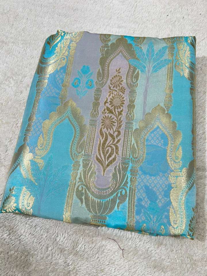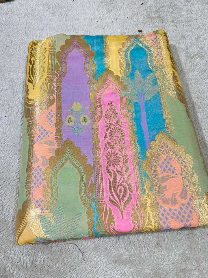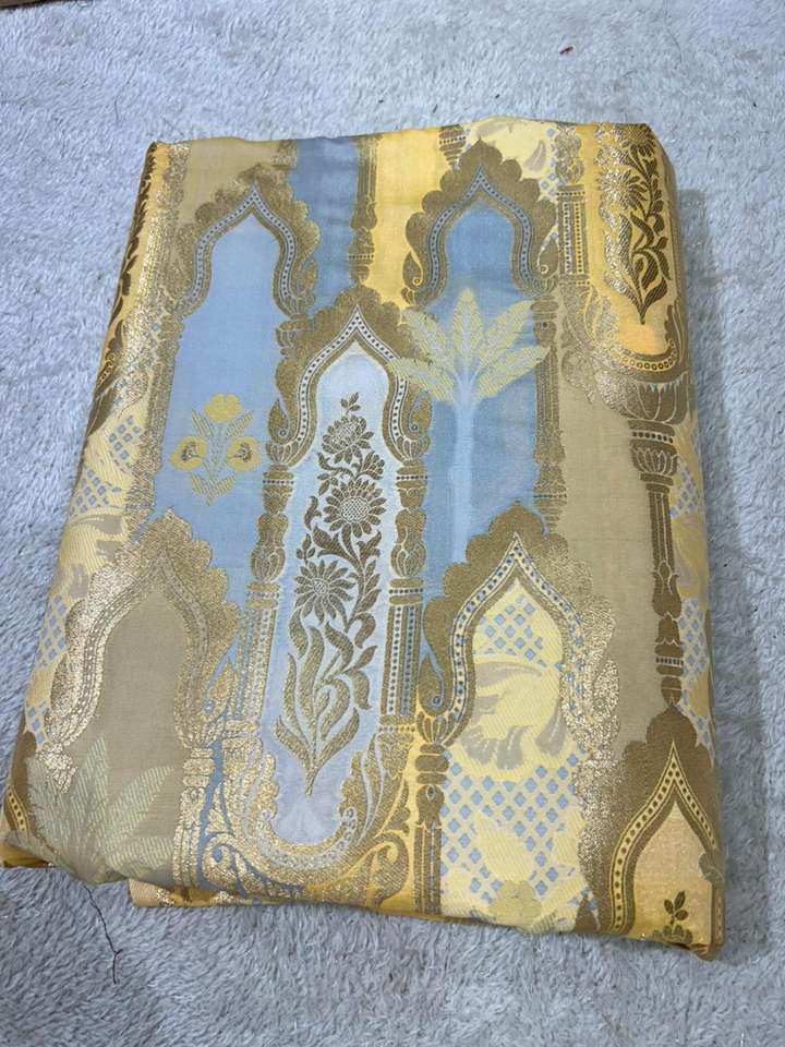 Luxury Jacquard Brocade Silk Fabric with Gold Zari Motifs Lightweight Knitted Silk Textile for Apparel & Decor Girls
