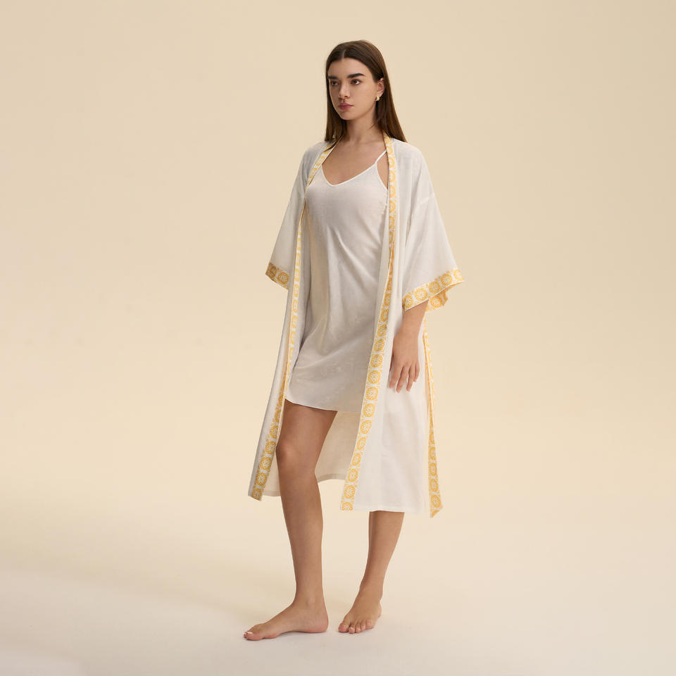 Luxury Jacquard Satin Summer Thermal Womens Loungewear Set Elegant Robe and Slip Nightdress Soft Comfortable Sleepwear