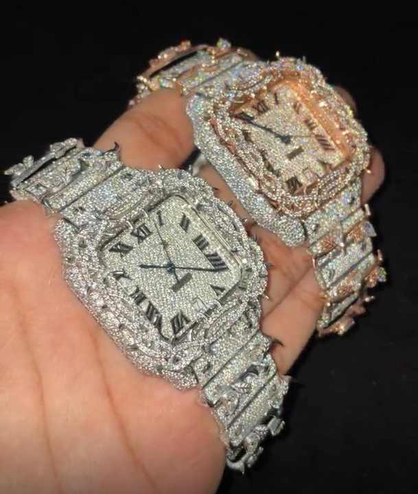 Luxury Diver Stainless Steel Antique Iced VVS Moissanite Sapphire Glass Quartz Movement Classic Fashion Unisex Bezel Case Thorns