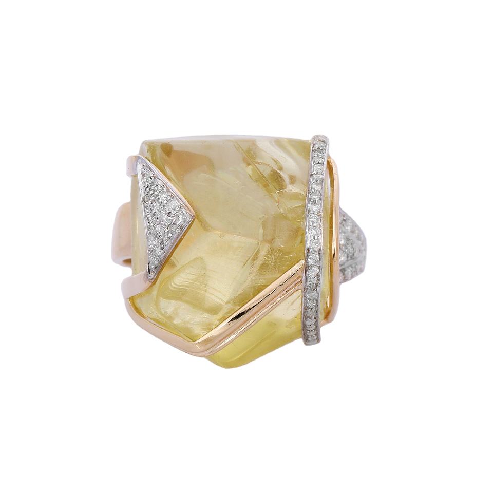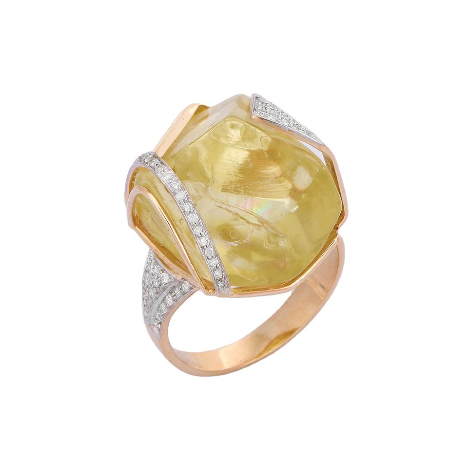Luxury 14K Solid Yellow Gold Diamond Ring with Natural Lemon Topaz Wedding Cocktail Ring for Women Wholesale From Manufacturer