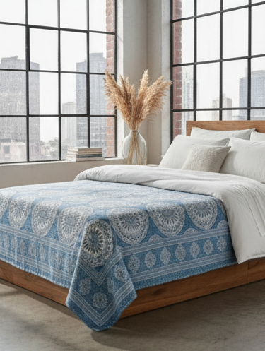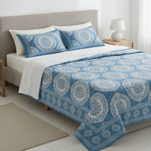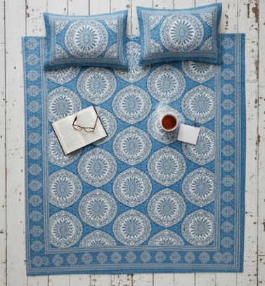 Luxury King Size 100% Cotton Nonwoven Wrinkle Resistant Bed Sheet 93x108 Elegant Brown Traditional Block Print Design Ethnic