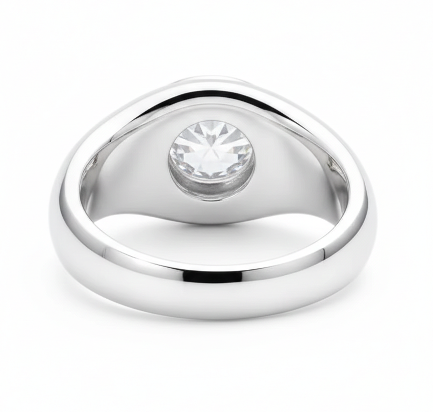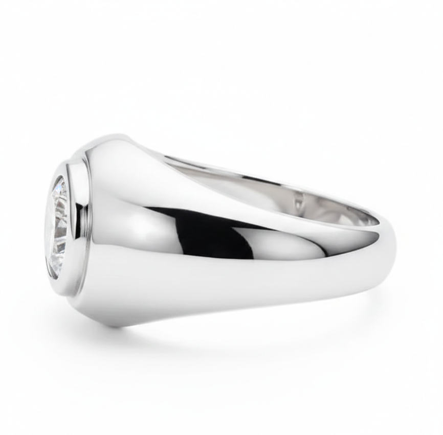 Wholesale 925 Sterling Silver 14K 18K Solid Gold Bezel Set Signet Dome Ring Minimalist Engagement Ring Wedding Band Men Ring