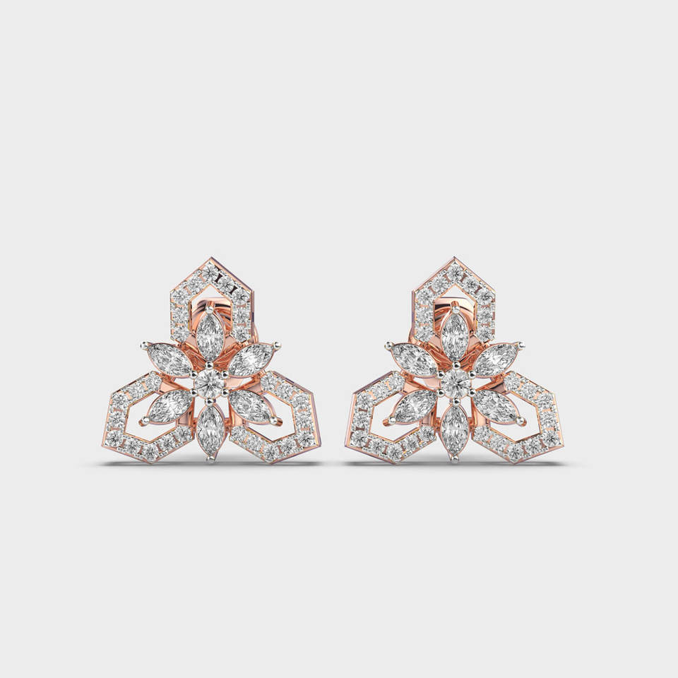 Luxury Lab Grown Diamond Flower Stud Earrings 14K Rose/White/Yellow Gold Prong Set 0.58ct Rhodium Plated