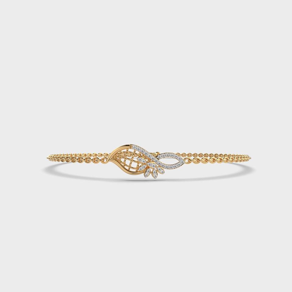 Luxury Lab Grown Diamond Leaf Infinity Bracelet 14K Rose / Yellow / White Gold Micro Pave Handcrafted Jewelry