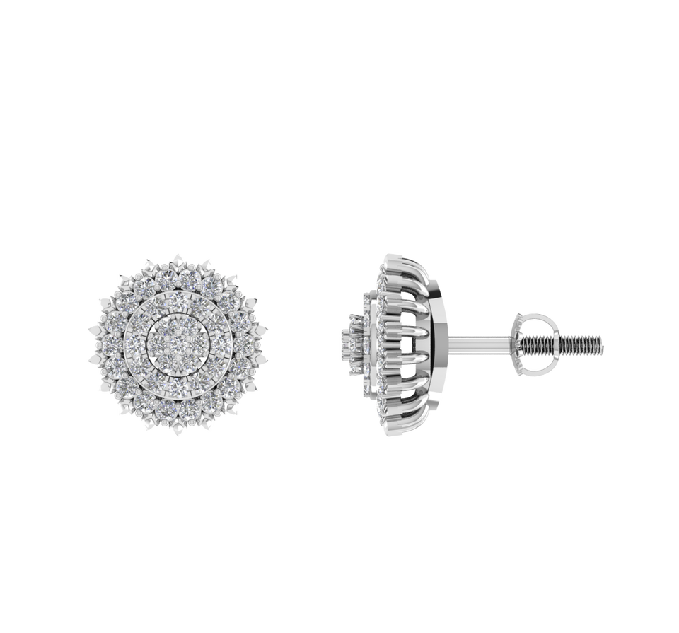 Luxury Lab Grown Diamond Stud Earring Double Halo Floral Design 950 Platinum Diamond Earrings Screw Back OEM ODM for Women