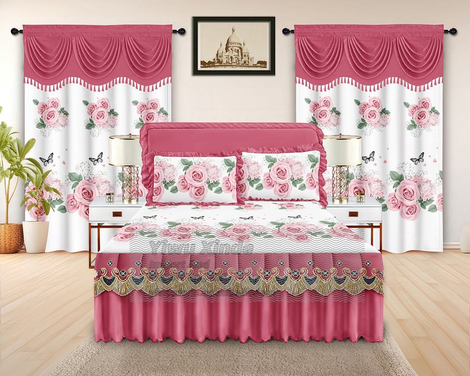 Product Name::Bed Skirt 5 Piece Set Sheet Set with Curtain